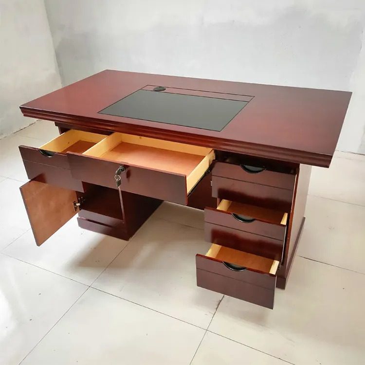 - Material:Executive office desks are typically made from high-quality materials like mahogany, cherry, or walnut. They may also have features like leather tops or chrome accents.