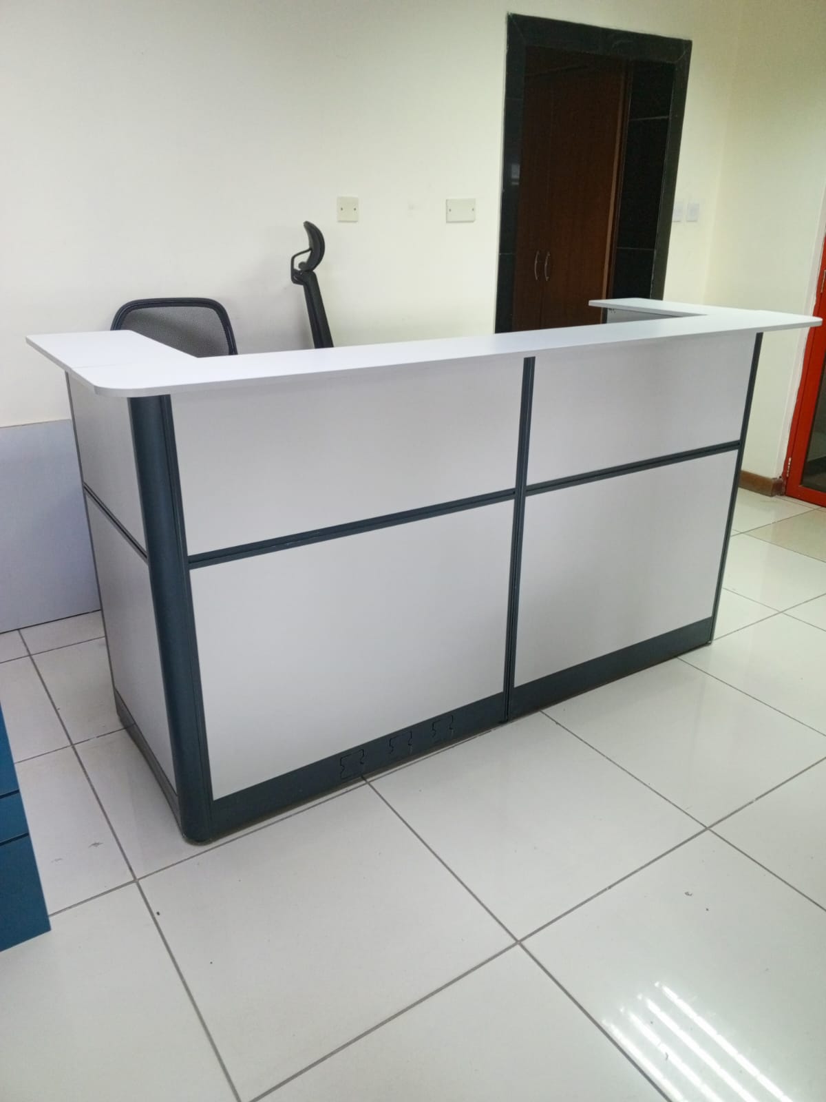 The front reception panel has horizontal panels giving the table a rich look as a first impression of the reception counter. The top panel for receiving visitors is wide enough for signing with any reception pen or keeping a reception bell to alert new customers.