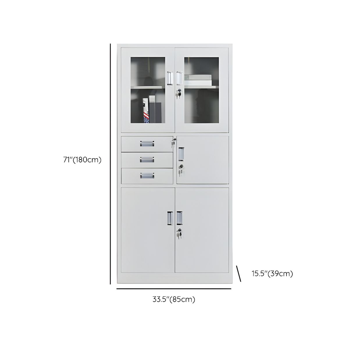 This 2-door office filing cabinet with safe is made of steel, making it durable as well as easy to clean. With locker inside and adjustable shelf, this file cabinet allows you to neatly sort your files into different categories and keep files safe.