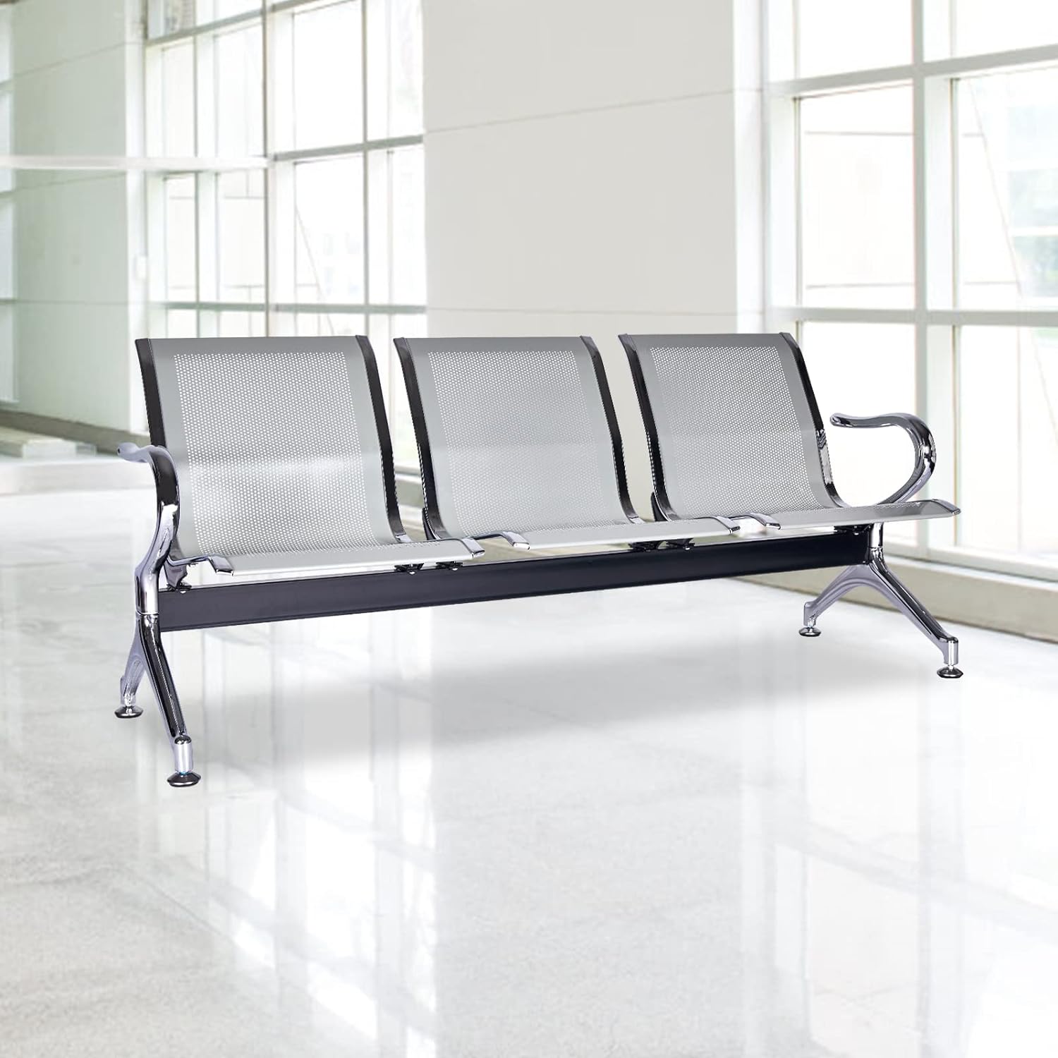 The steel frame make the seat sturdy, when you sit down or stand up the seat won’t jumps up a bit. This waiting chair is comfortable to sit in.