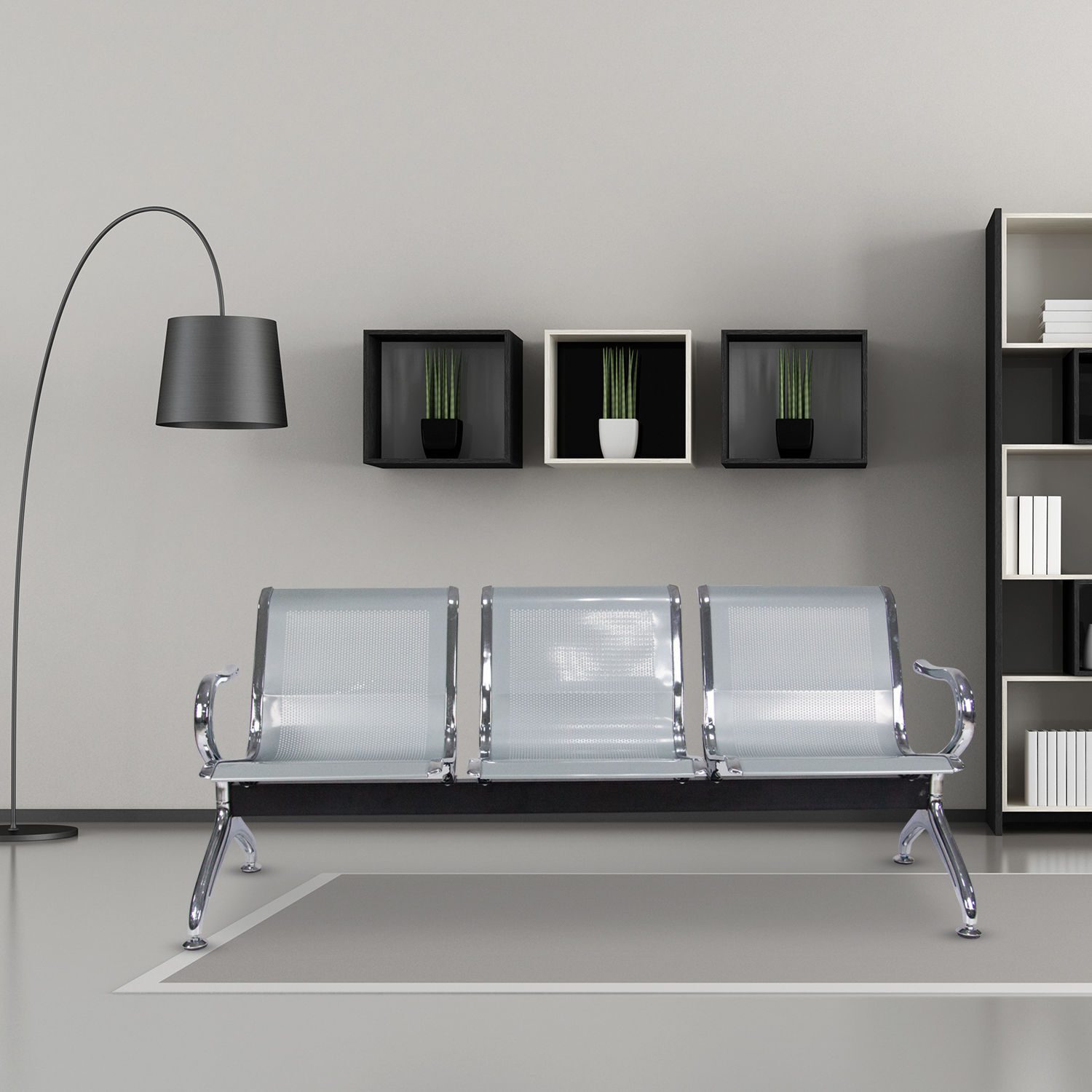 This spacious 3-seater non-padded waiting bench is thoughtfully designed to maximize comfort while conserving valuable floor space.
