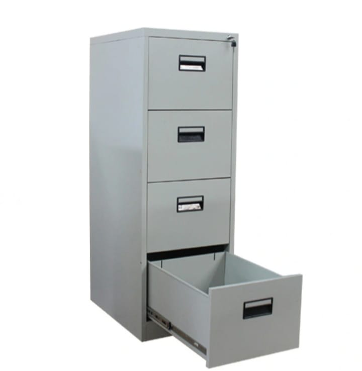 4 – Drawer Metallic Office Cabinet comes in different colors. Metal combines durability, beauty, stability, and resistance to impact. It is the reason why all professional mechanics and shops use metal cabinets for their bulk storage, not wood. This metal Filing cabinet is durable and also long-lasting. The Filing Cabinet has drawers that are lockable to ensure your document and files are safe and secure. it also looks decent in an office making it easy to organize your office.
